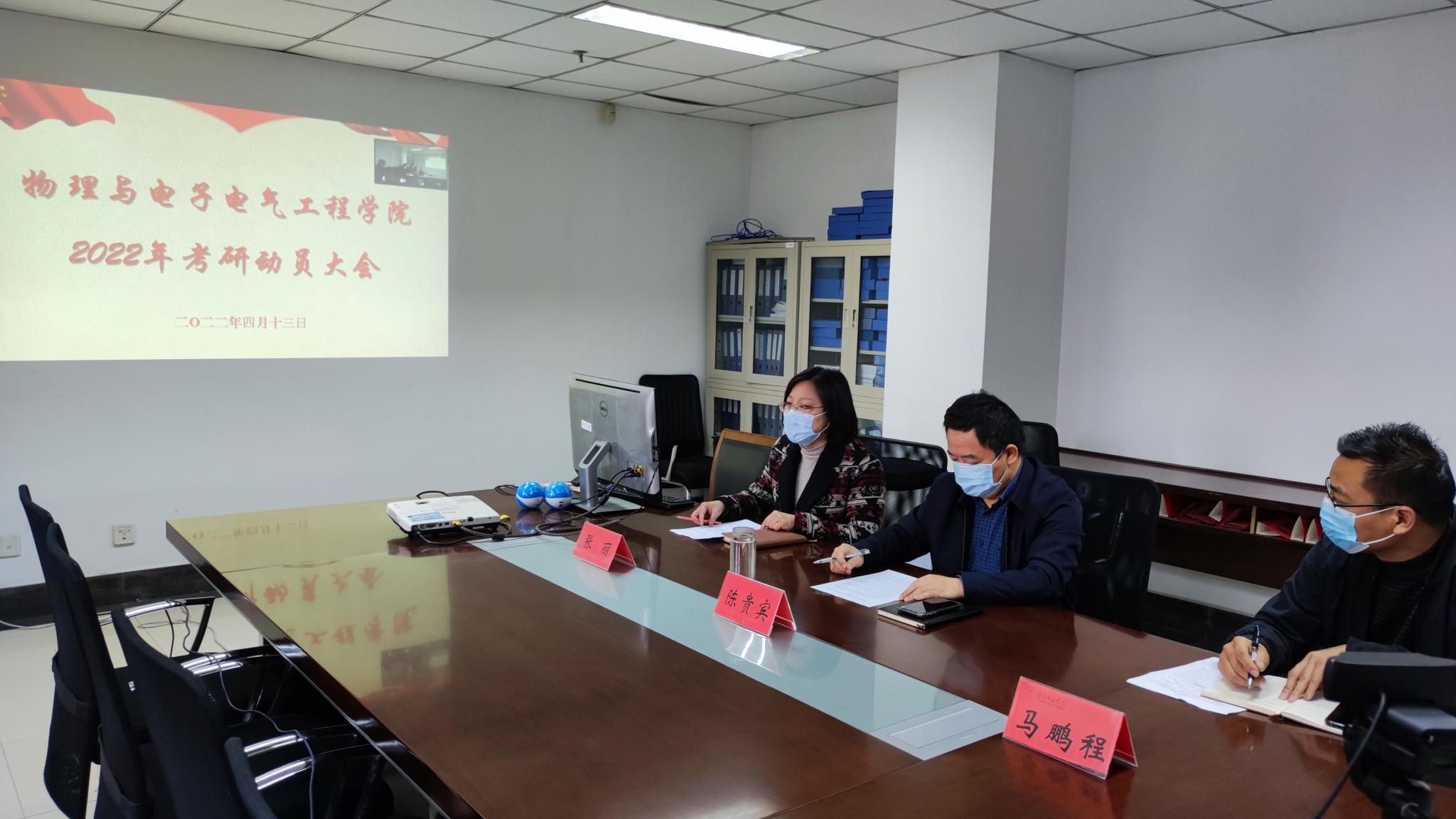 淮师新闻网4月14日电(记者 高雨阳 郭灿灿)4月13日下午,云顶国际8588yd召开2022年考研动员大会,本次大会以线上线下相结合的方式召开。云顶国际8588yd经理陈贵宾、副经理马鹏程、2019级所有班主任、员工参会。党委副书记张丽主持。