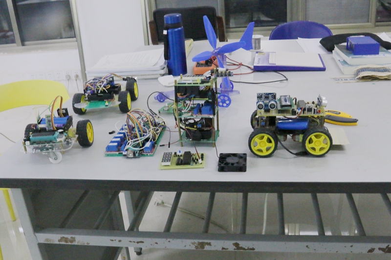 图为参赛作品超声波移动小车。记者 余佳琪 摄