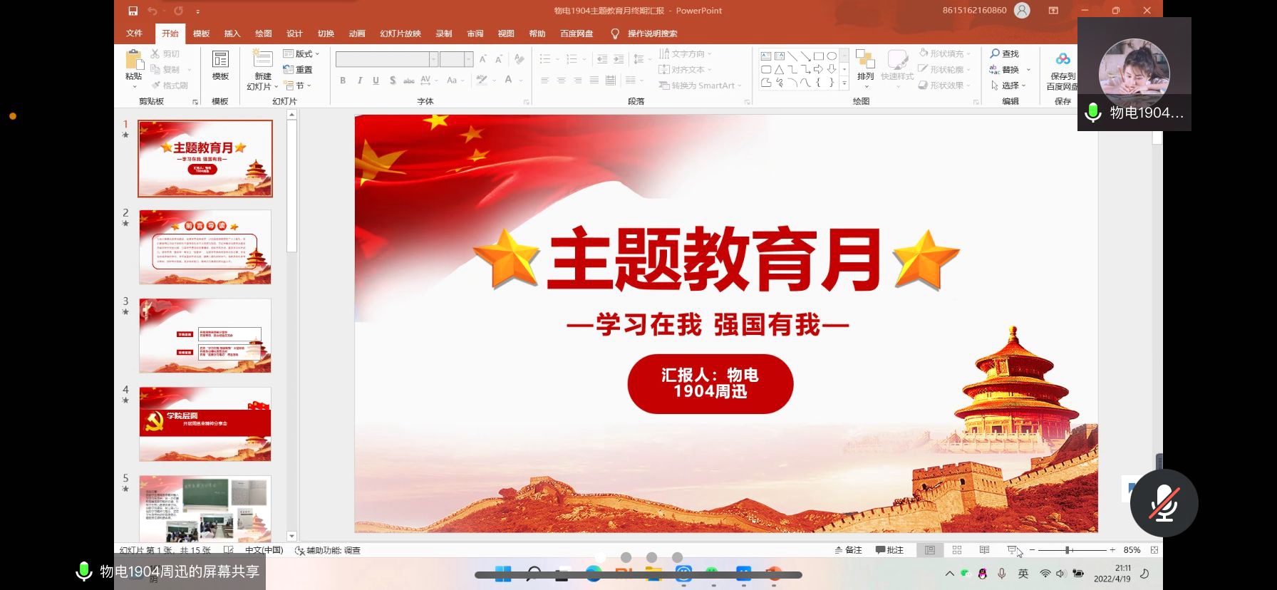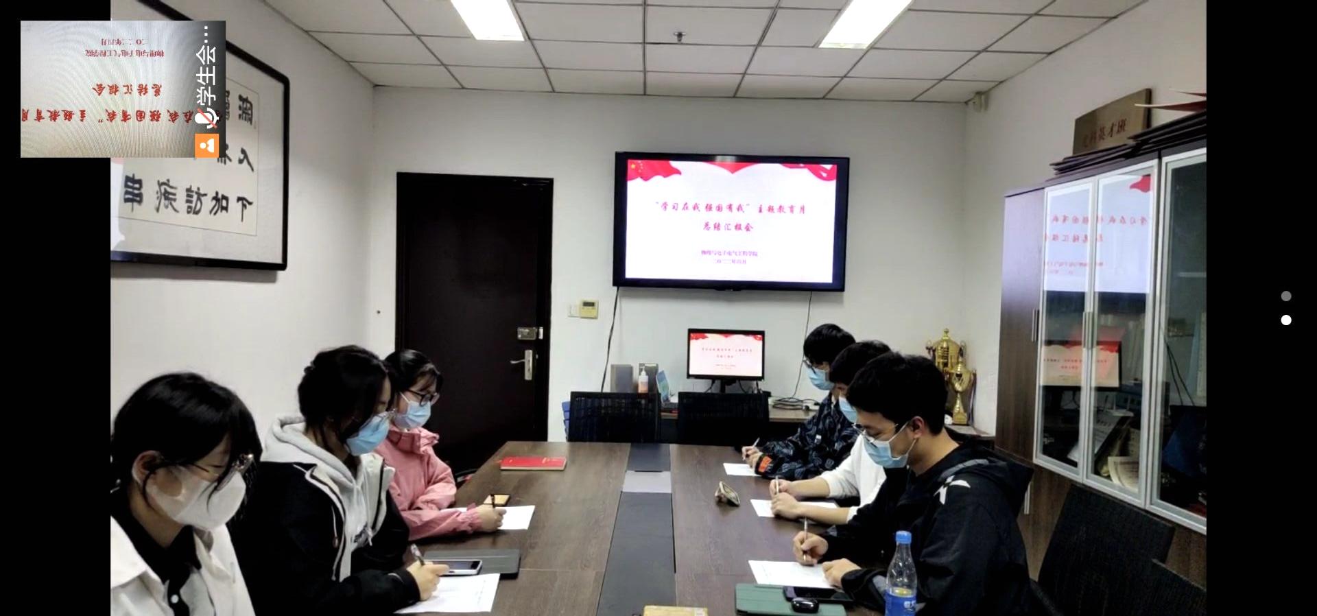 淮师新闻网4月20日电(记者 夏合梅 于欣)为总结主题教育月工作,展示主题教育月活动成果,近日,云顶国际8588yd通过线上线下相结合的方式开展“学习在我 强国有我”主题教育月总结汇报会。本次会议由韩佳敏同学主持,团委陈老师及19、20、21级各班班长参加此次会议。