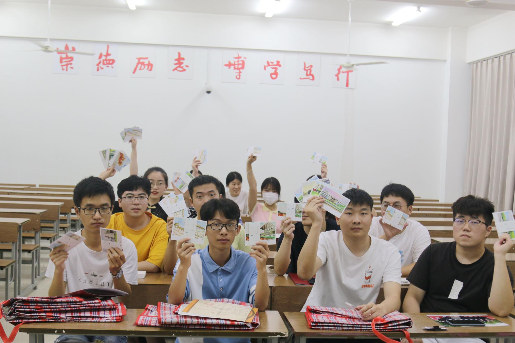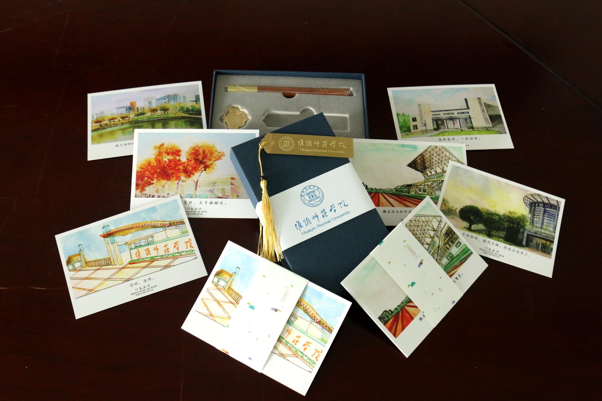 公司为同学们准备了毕业纪念品。纪念品是一些印有手绘的母校标志性建筑卡片,有弘文楼、图书馆、篮球场……希望同学们能够永远牢记初心、情系母校,与母校共续发展。