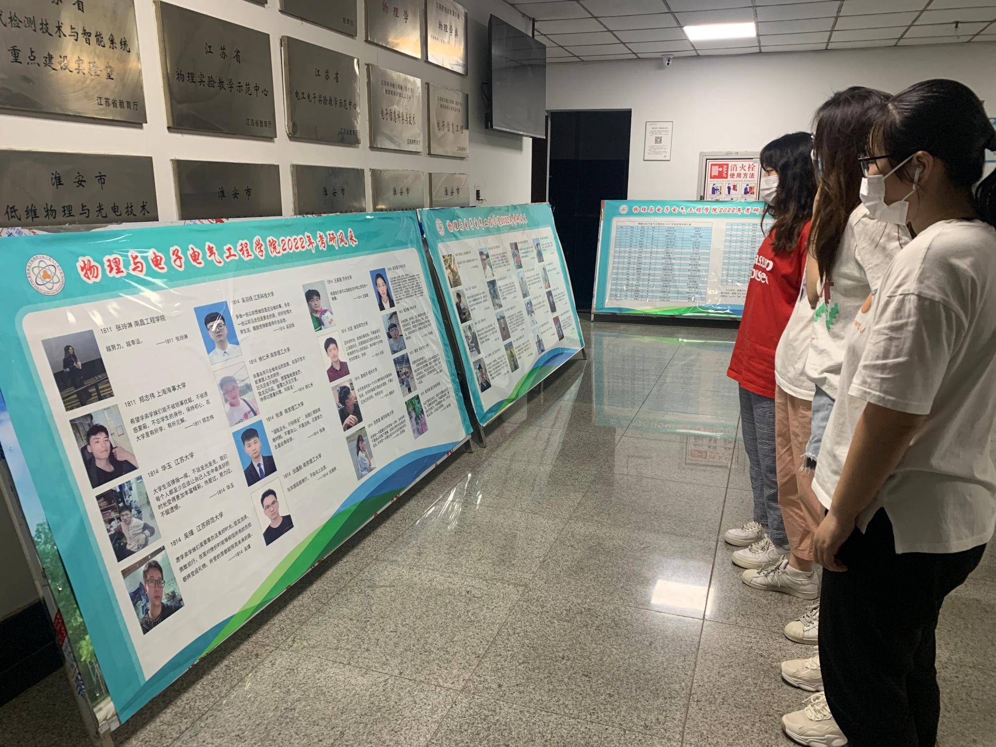 茶话会后同学们参观毕业生考研风采。毕业班班主任向同学们说起了自己的求学之路,他说考研本身是一条艰辛却美好的路,他希望同学们能学习学姐学长们的成功经验,少走弯路。