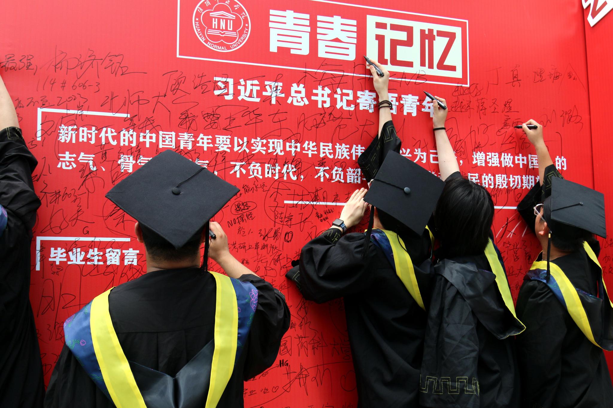 图为班级同学签名现场。记者 魏梦文 摄