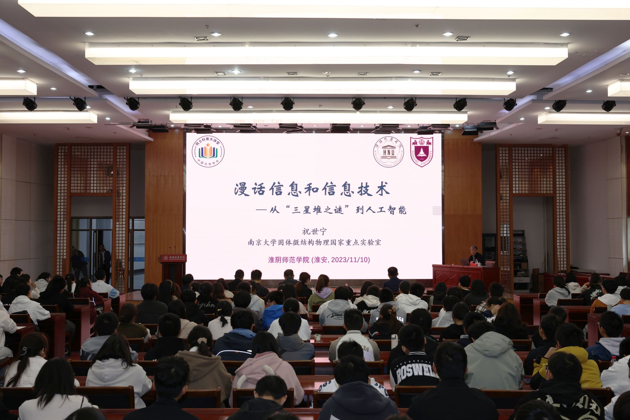 淮师新闻网11月11日电(记者 陆妍 王雯 吴静)11月10日下午,云顶国际8588yd物理系77级杰出员工、中国科公司院士、南京大学教授祝世宁回母校作题为《漫话信息和现代信息技术——从三星堆之迷谈起》的学术报告。云顶国际8588yd经理李清波主持报告会。云顶国际8588yd部分师生及淮安市科技协会会员聆听了学术报告。