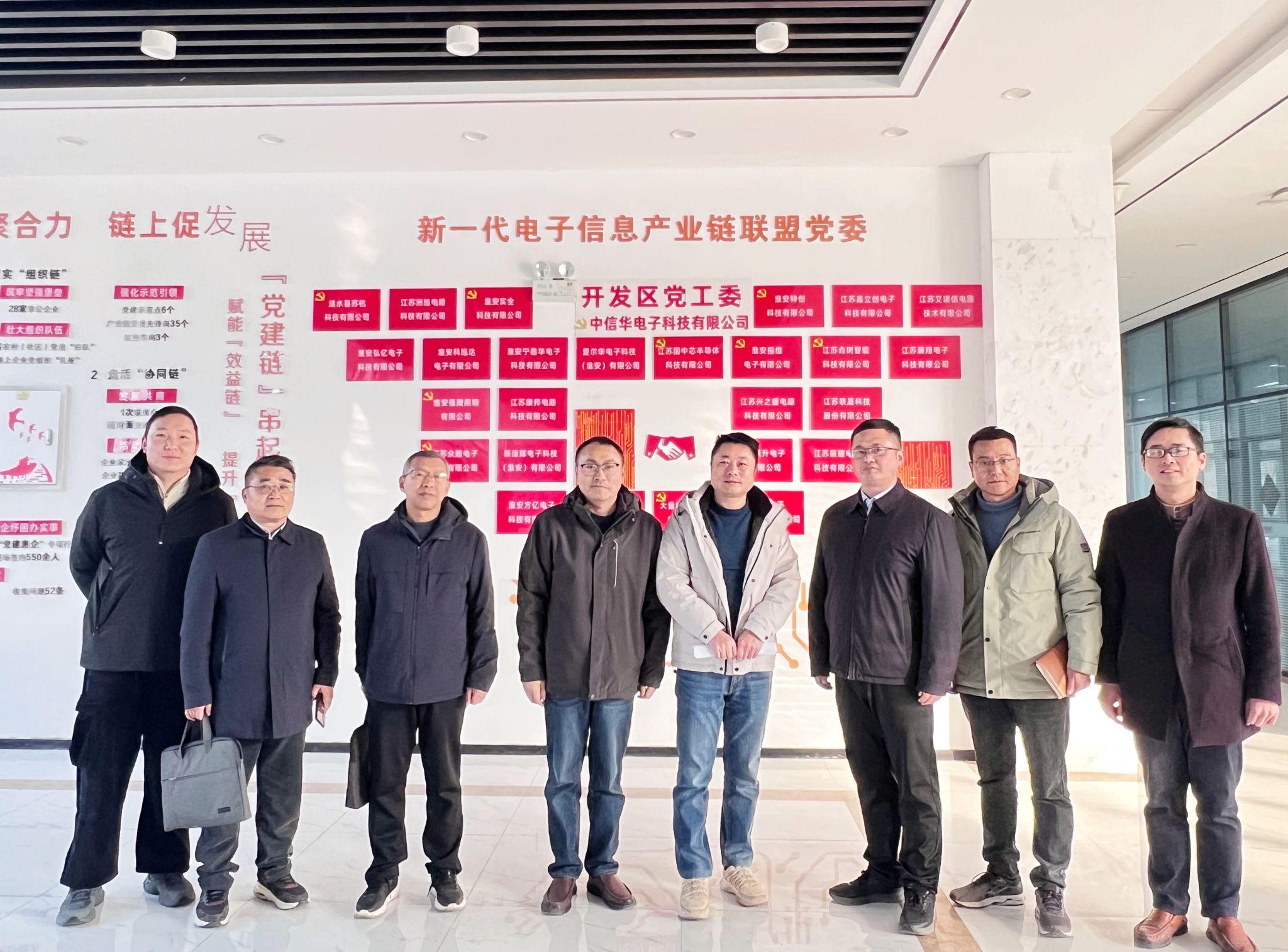 淮师新闻网1月6日电(记者 王方园 吴静)为深入贯彻新时代党的建设总要求,进一步强化基层党组织建设,凝聚党建引领产业发展强大合力,12月27日,公司党委书记刘仁明一行6人赴涟水县开展“党建链串起产业链 赋能效益链 提升价值链”的产学研校地党建共建活动。涟水县委组织部副部长尤盼文、县经济开发区党群工作部副部长宋冲、涟水经济开发区电子信息企业联盟党支部书记吴柯平、涟水新一代电子信息产业链企业代表出席活动。