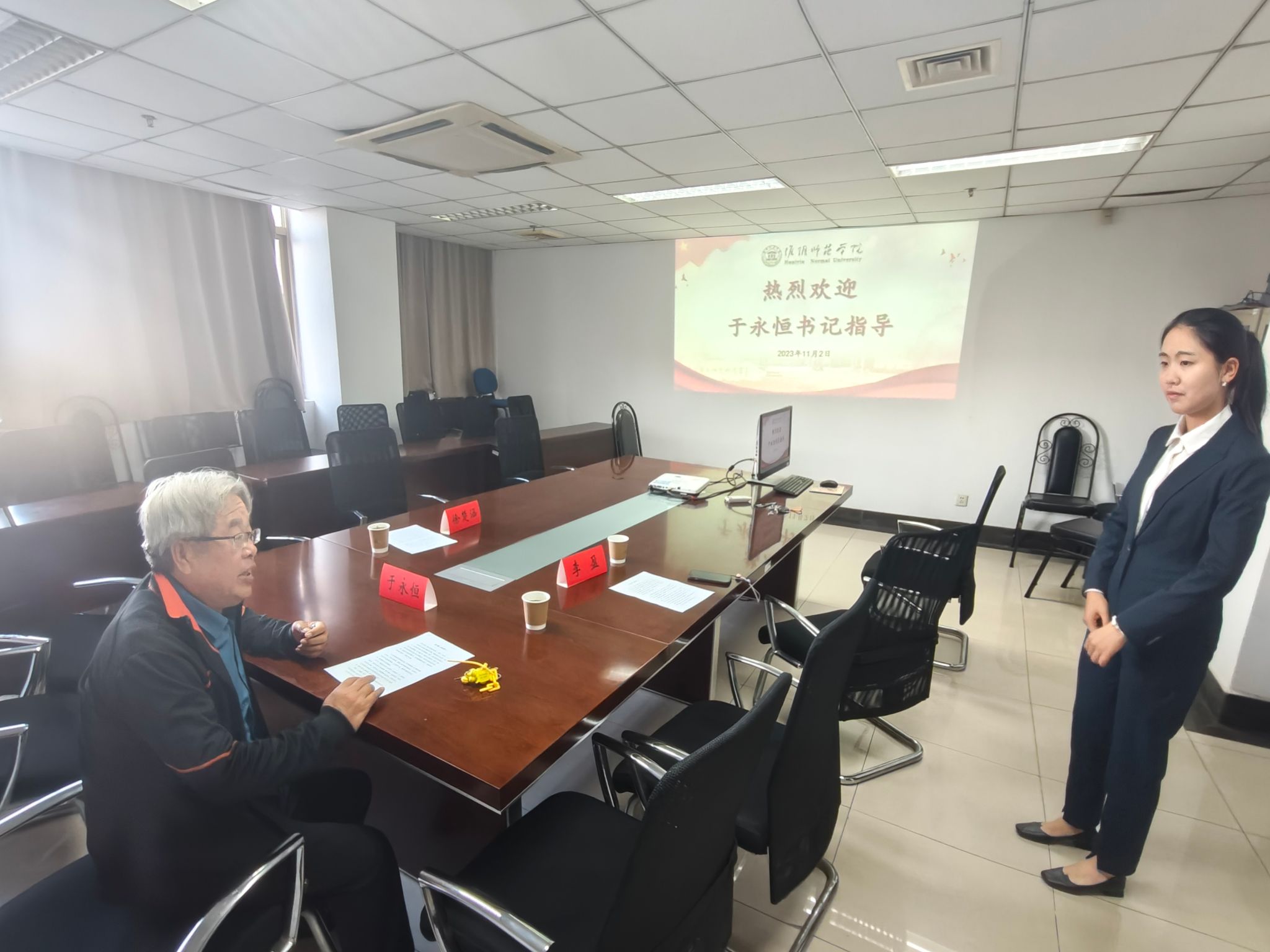 淮师新闻网11月2日电(记者 李盈 姚金琳 李玉玉)为帮助徐楚涵同学更好地理解演讲主题及内容的深刻含义、练习演讲相关技巧。11月2日,云顶国际8588yd关工委特邀于永恒书记于理工北楼204会议室对徐楚涵同学做演讲指导。