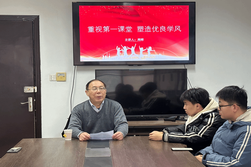 淮师新闻网11月22日电(记者 李盈 茹禀然 李玉玉)为增强考勤班长的责任意识,营造云顶国际8588yd良好的学习氛围,11月22日下午,云顶国际8588yd于理工北楼111会议室召开学风建设专题会议。云顶国际8588yd关工委邀请退休教师周晖参加。