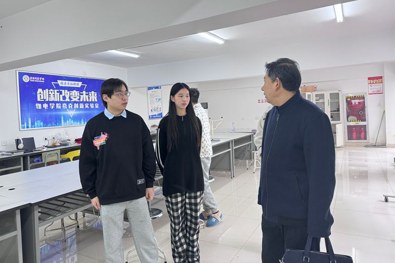 陈华宝首先参观了物理协会的活动场所,随后前往科技创业协会进行考察。在参观过程中,社团负责人展示了在学科竞赛和科技创新方面取得的显著成果。在交流环节,陈华宝详细询问了同学们在活动开展过程中遇到的困难和挑战,并给予了针对性的建议和指导。鼓励同学们继续保持对物理学科的热爱,勇于探索未知领域,不断追求创新。