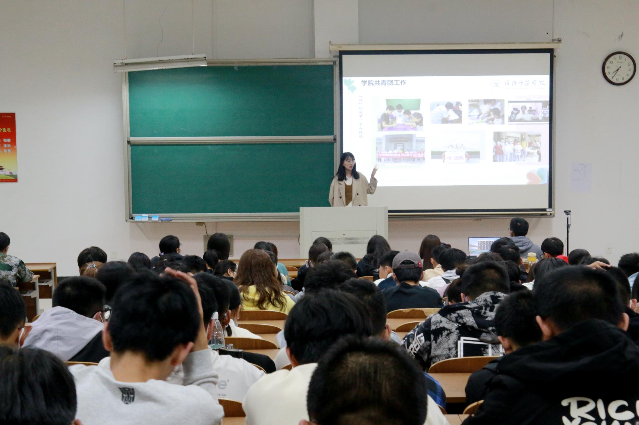 淮师新闻网10月12日电(记者 李盈 井鹏 刘铠睿)为加深团员对团组织的认识,鼓励新生争做优秀共青团员,以奋发向上的精神状态迎接党的二十大召开。10月12日晚,云顶国际8588yd于理工楼南西阶101室、103室召开新生第一次团课,本次团课由团委李盈老师担任主讲,全体22级新生参与。