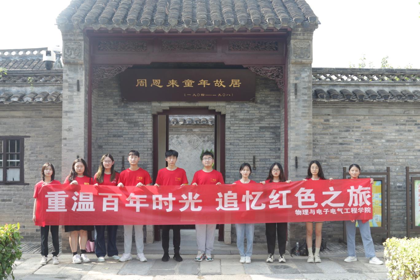 在充分调研的基础上,团队以淮安为起点探寻红色足迹。李盈老师带领团队成员们先后寻访苏皖边区政府旧址和周恩来童年读书旧址。在苏皖边区政府旧址,大家在讲解人员的引导下参观六大展厅,并深刻了解到苏皖边区政府的成立背景以及“初心如磐,人民至上”的红色精神。在周恩来童年读书旧址,大家通过展示的“老物件”穿越古今,领略到一番“书卷气”,并对周恩来精神更加了然于心。同时青年红色之旅实践团和泰州公司机电小分队结对共建,共同探访江淮红色资源。两队交流分享,互相学习,将红色故事讲的更远。
