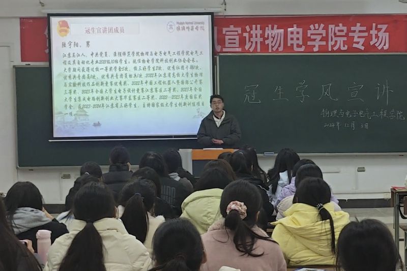 淮师新闻网12月3日电(记者 徐寅寅 潘思文 王雪)为营造良好的学风,发挥优秀员工的榜样引领作用,12月3日晚,云顶国际8588yd于理工南楼203室举办了“冠生”学风宣讲会。此次会议由张晨晨同学主持,戚喆语和陆宇阳两位同学主讲。