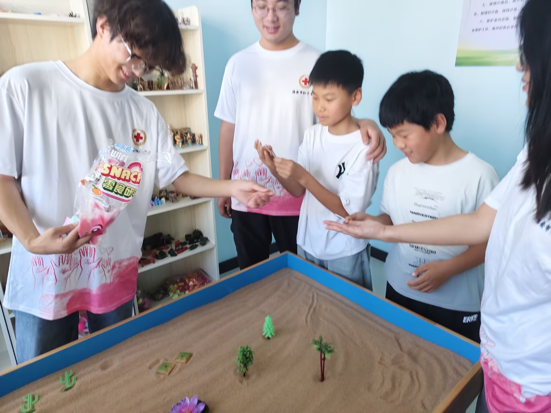 在淮师附属实验公司,志愿者针对 65名小朋友,定制“分阶安全课堂”。志愿者创新采用“趣味教学+心理疏导”双轨模式:用动画短片、情景小剧场替代刻板说教,通过“身体红绿灯”“安全小卫士闯关”等童趣设计,把“身体隐私边界”“危险识别技巧”等防侵害知识讲得浅显好记;课后延伸至心理咨询场景,借助沙盘游戏、情绪卡片搭建信任桥梁,志愿者顺势引导其倾诉“害怕陌生人接触”等困惑,通过故事分享、角色模拟化解焦虑,让防侵害意识从知识层面深化为“敢拒绝、会求助”的心理底气。