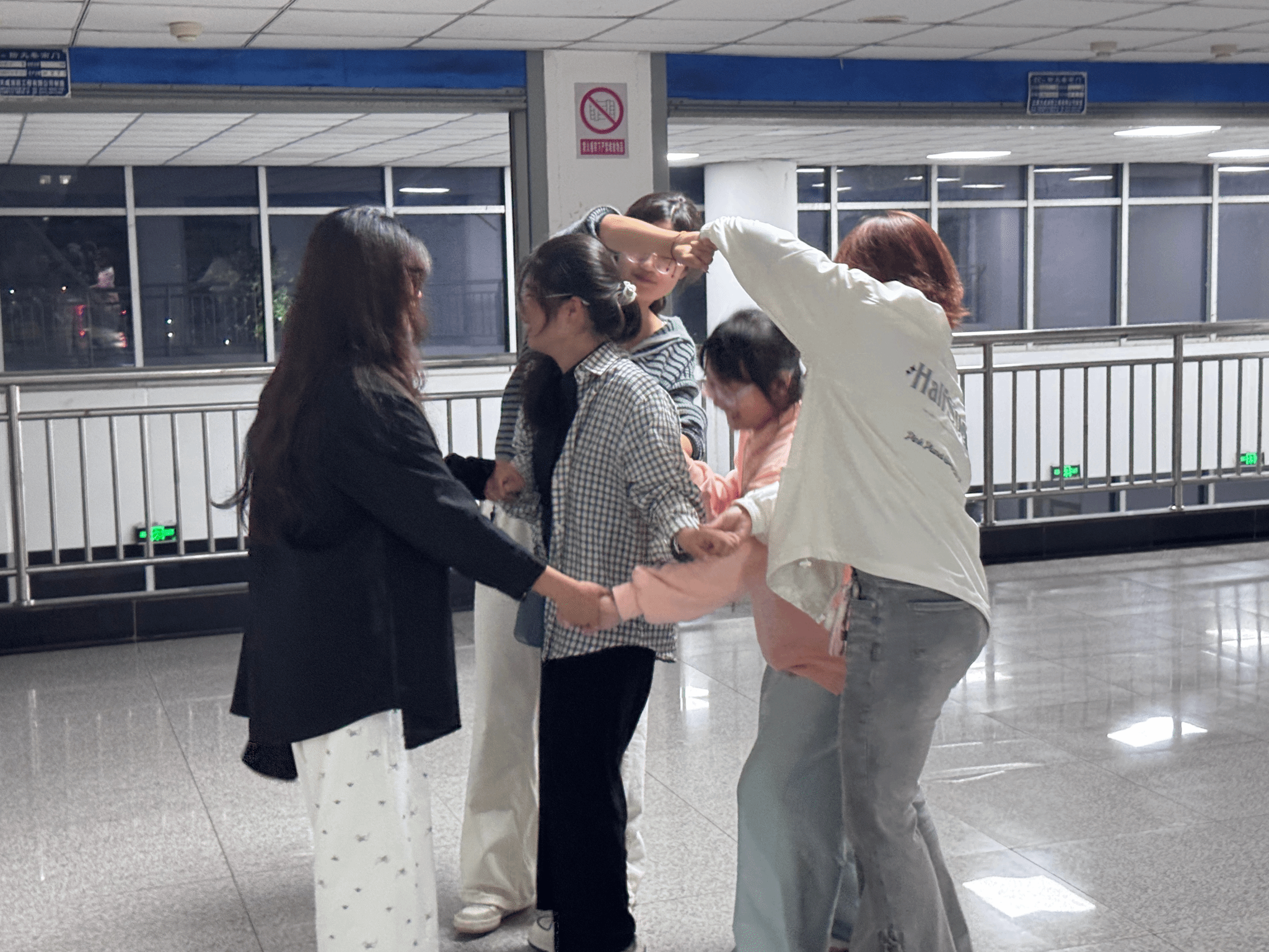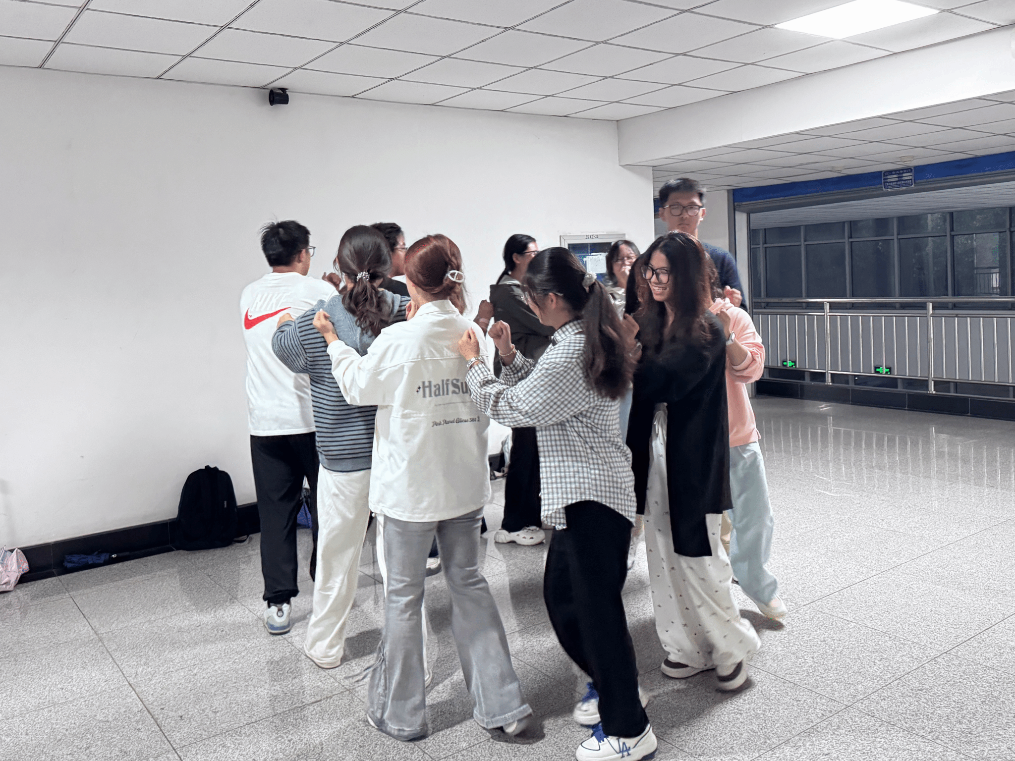 活动设1名带领者与2-3名协助者,全场60分钟趣味十足。活动伊始,带领者清晰宣读活动规则,为一系列活动有序开展奠定基础。“生日接龙”让新生在手势、眼神等非语言沟通中找相似出生年月的伙伴;“轻柔体操”环节,新生们以“捏肩捶背”的互动方式来缓解疲劳、增进感情;“三生有幸”活动鼓励新生自我赞美、分享优点,提升自信;“相似圈”引导大家找到小组共同话题,拉近彼此距离;“心有千千结”则在齐心协力解“手链”的挑战中,让新生体会团结的力量,集体荣誉感显著提升。