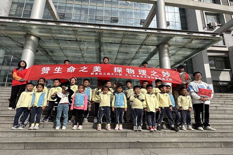 图为新星幼儿园在理工楼前合照。记者 茹禀然 摄