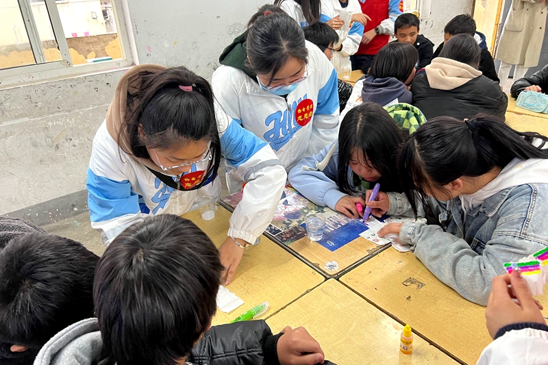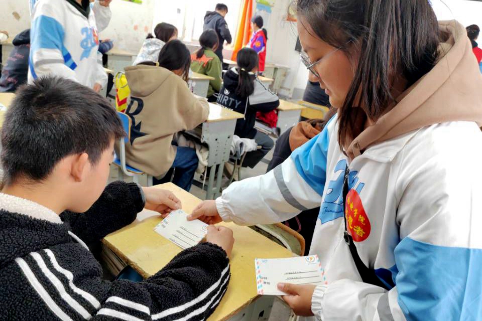 除此之外,一张张送出的明信片是淮师志愿者对淮安三树中学同学们的美好寄语;一个个有趣的小游戏是志愿者与他们的真诚互动。活动结束后,三树中学的孩子们热情地与志愿者合影,不少同学还表示期待志愿者的再次到来,现场氛围十分温暖。