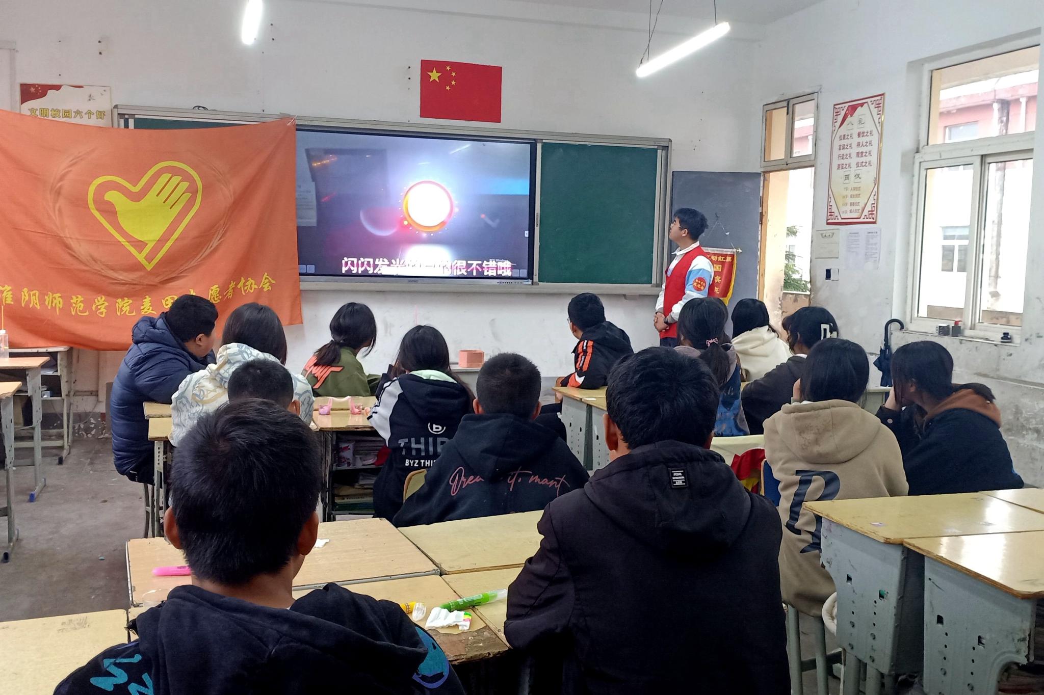 活动的准备阶段,麦田志愿者协会面向全院募集志愿者,并进行志愿者的集体线上培训。4月3日下午,在团委李盈老师的带领下,麦田志愿者协会的志愿者们集体乘坐大巴车前往淮安三树中学。此次活动,志愿者们分为心理与实验两组。实验组的志愿者们为这群充满求知欲的孩子们带来了有趣的实验,在讲述物理原理的基础上与同学们一起动手操作。浅显易懂的实验不仅让同学们真切体验到了物理实验的乐趣,也使志愿者和同学们有了更好的默契。心理组的志愿者们则是对同学们进行心理咨询指导,同时以当下中员工普遍存在的问题为出发点,对青少年的压力、社交、理想等问题进行讨论,并提出问题的解决方法,为同学们答疑解惑。
