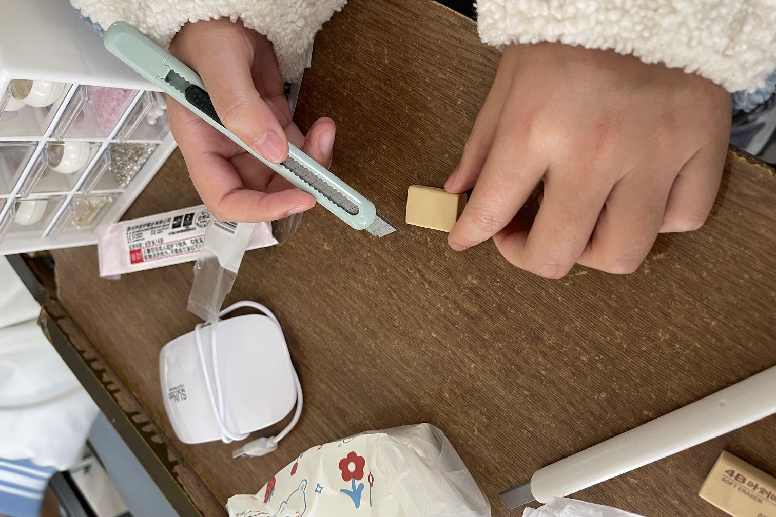 本次活动以携手做橡皮章为契机,让同学们充分发挥自己的想象力,用自己手中的小型雕刻刀具在专用于刻章的橡皮砖上进行篆刻,从而制作出可反复盖印的图案。在DIY社团负责人的指导下,同学们以刀为笔,在橡皮上书写德育的魅力,纷纷展现出自己独特的一面。一颗颗小小的橡皮上体现了员工对德才兼备的独到理解,体会到那份独属于中国人的浪漫情怀,同时也彰显了中华文化的博大精深。随后,同学们互相交流自己的创作思路,在欢声笑语中结束了此次活动。