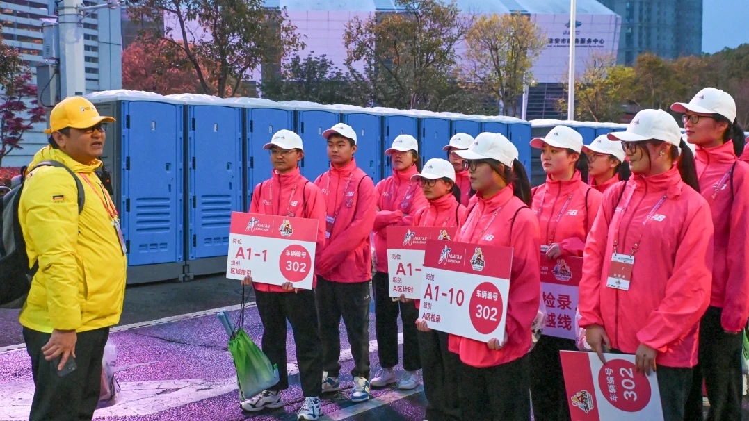 他们,享受青春少有的踏月而行。凌晨4:30,在公司图书馆前集结完毕,登上接驳车,抵达淮马赛场。到达工作区域后,跟随相应的分组组长,再一次明确工作点位及工作内容,他们面带微笑、统一着装、井然有序,在各自的工作岗位上做好志愿服务。同时,他们与其他志愿者保持良好的合作,以微笑和友好的态度,让参赛者感受到热情与温暖。