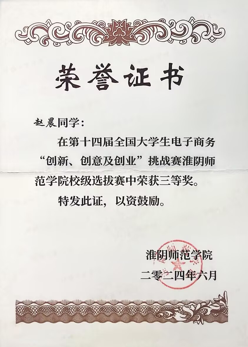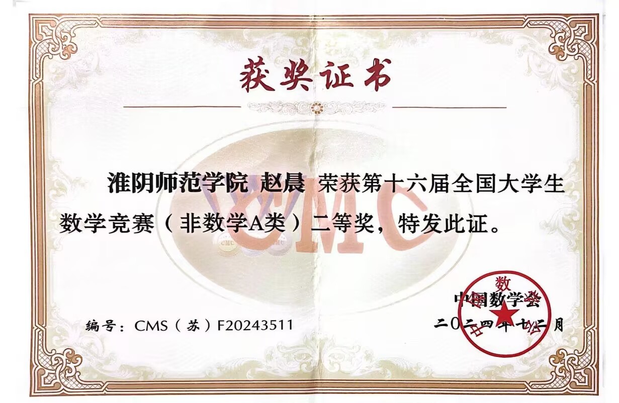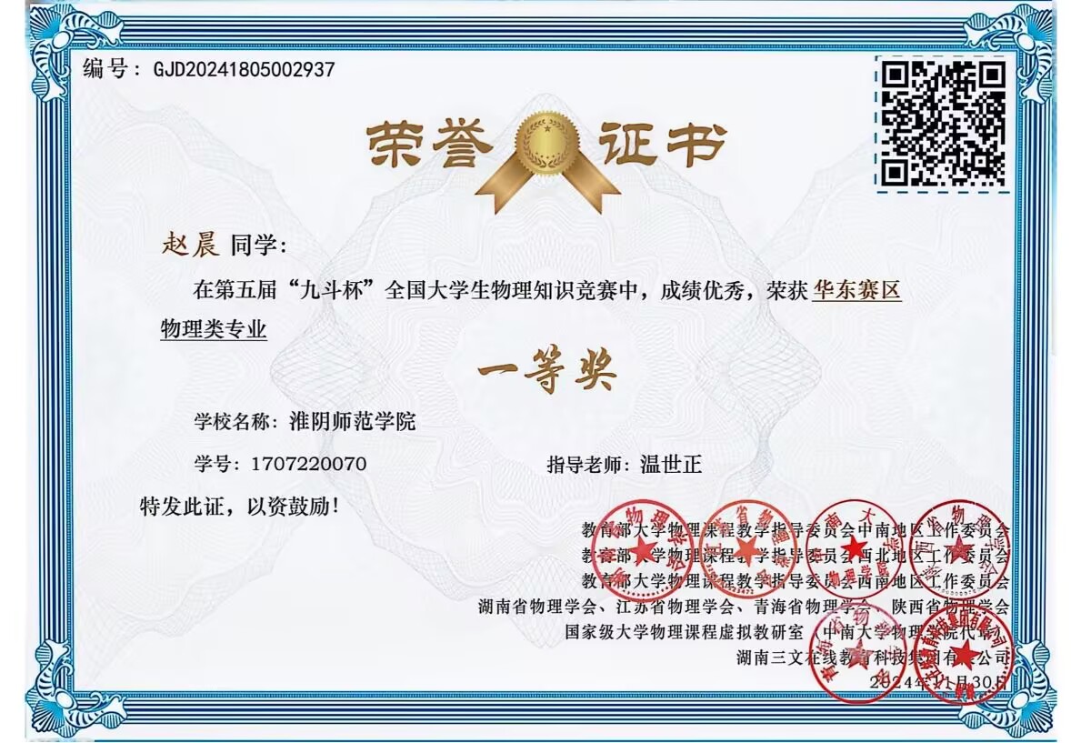 淮师新闻网4月25日电(记者 吴宣 叶梓隆 宋逯豪)赵晨,中共党员,2022级物理学(师范)专业员工。曾任心理拓展部部长,现任团委副书记兼职和校心联执行主席。获国家励志奖学金两次、校一等奖学金四次、校二等奖学金一次。曾获“三下乡”先进个人、校三好员工、优秀共青团干部等荣誉称号。参加过全国老员工数学竞赛、全国老员工电子商务挑战赛、全国老员工物理知识竞赛等,并多次取得优异成绩。