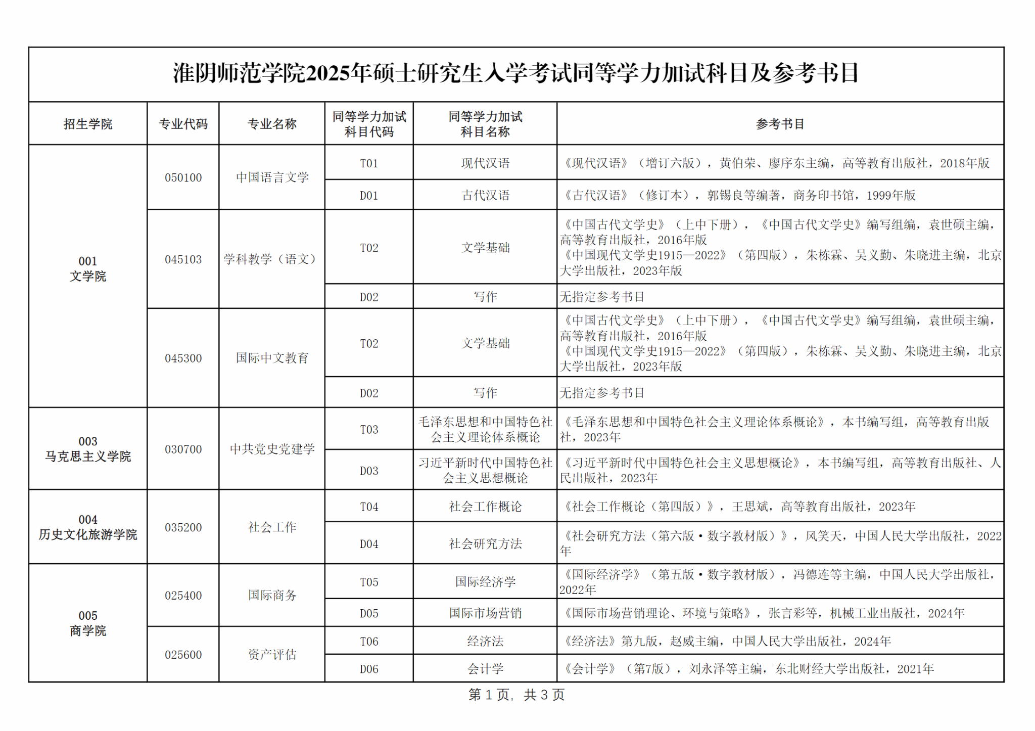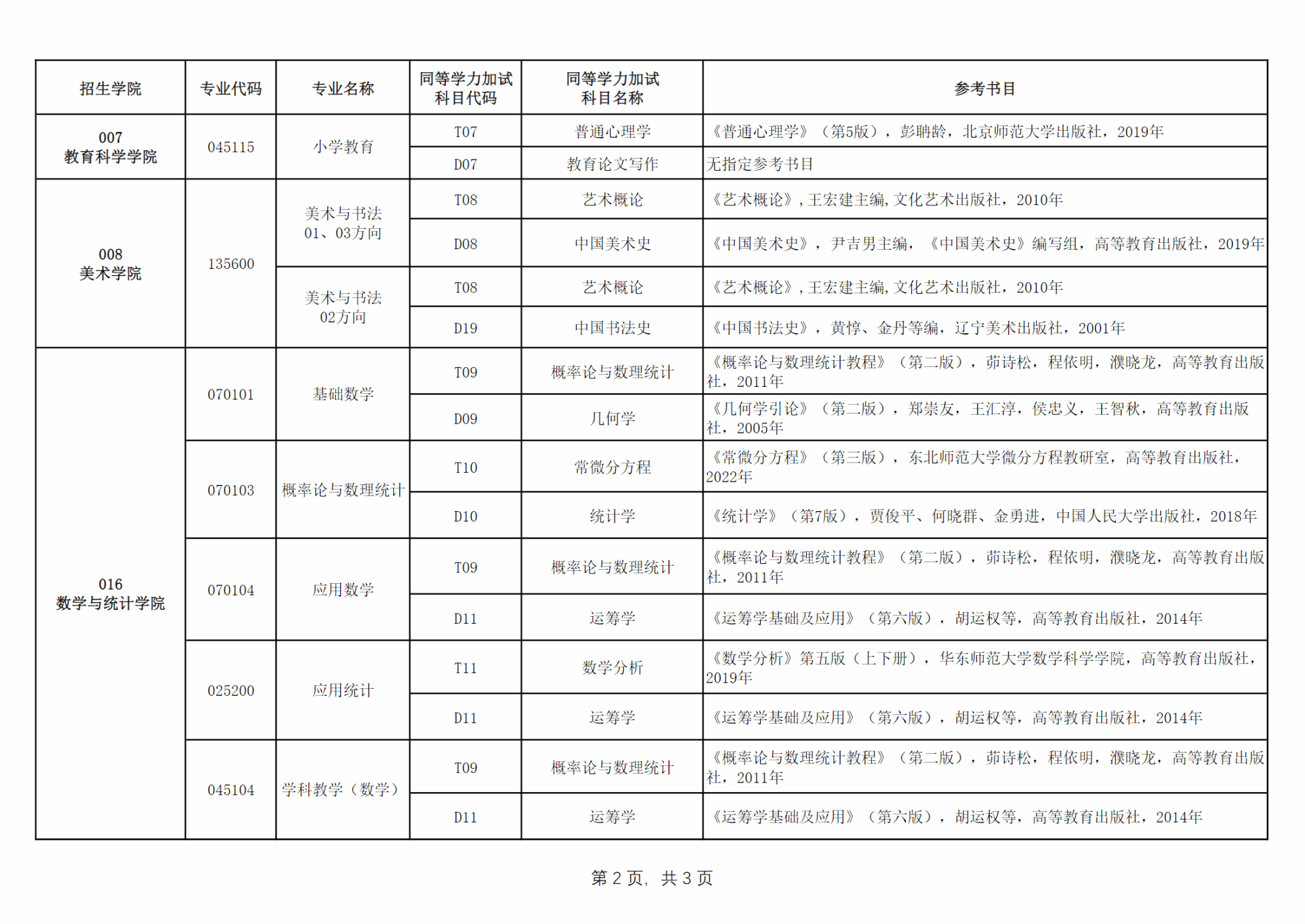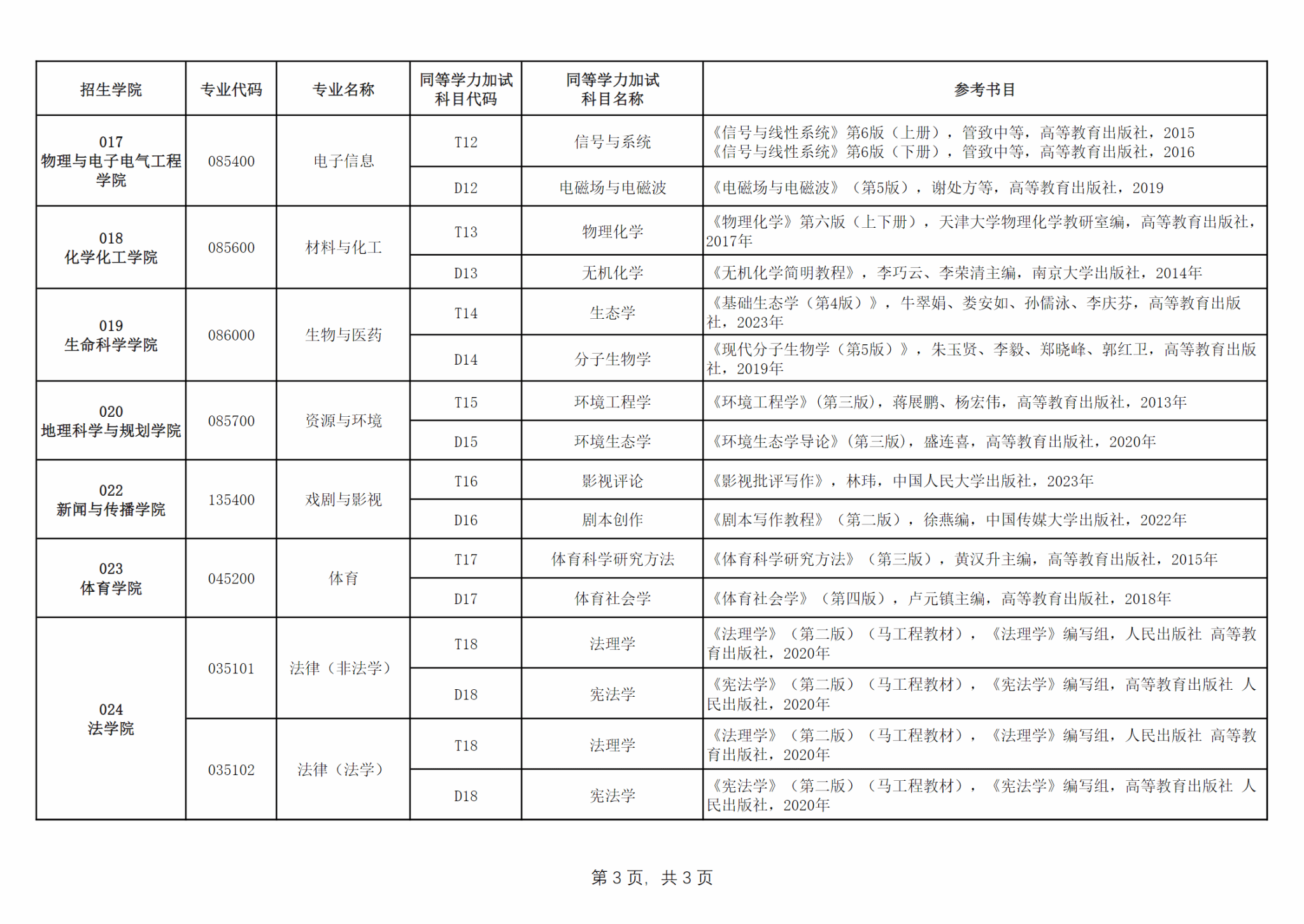 2025年硕士研究生入学考试同等学力加试科目及参考书目