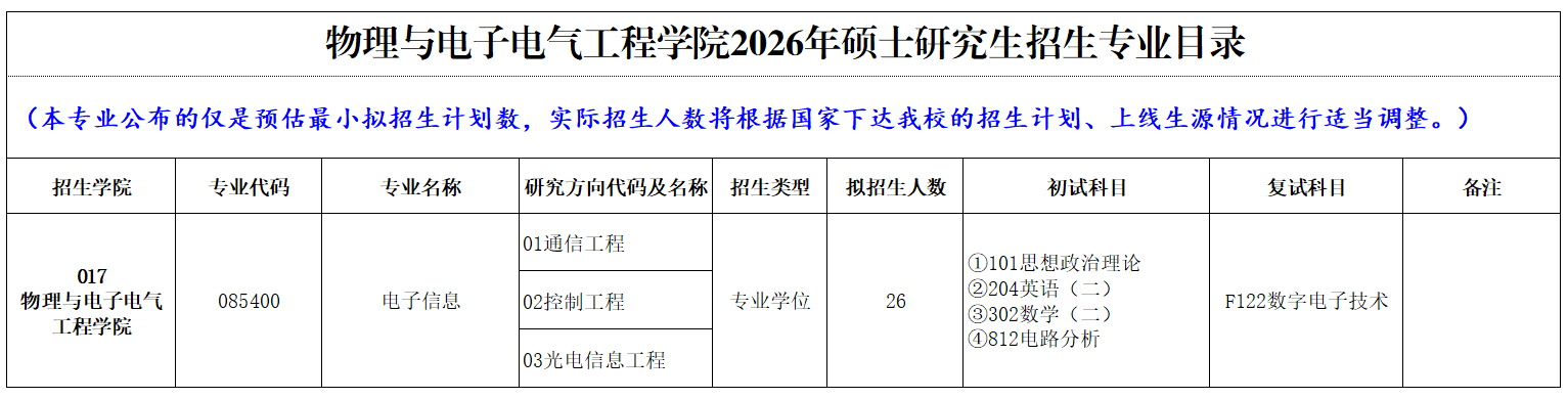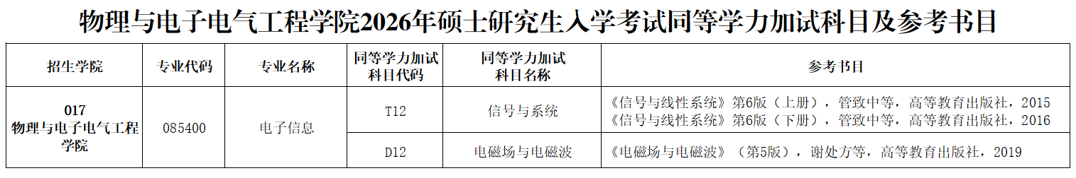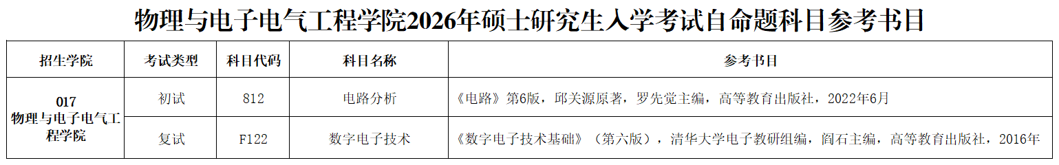 2.考试科目:电子信息工程专业初试科目分为全国统一命题科目和自命题科目。全国统一命题科目为101思想政治理论、204英语(二)、302数学(二)。全国统一命题科目的命题工作由教育部教育考试院统一组织。公司自命题科目为812电路分析。